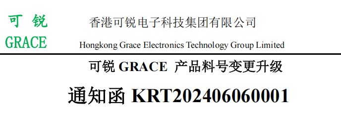 可锐GRACE 产品料号变更升级通知函KRT202406060001 Company News作者:Gracevn2024-06-06致各营业部/客户/代理商/渠道: 为了更好的服务客户,实现产品应用场景的精细化管理,我司对可锐GRACE产品料号变更升级,特发出此升…